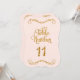 COLECCIÓN DE DISEÑO Nº 11: En el color rosa de la concha color pastel pálido con un aspecto metálico purpurina dorado con un efecto dimensional perfecto para coordinar con una amplia gama de bodas, duchas de novias, eventos de negocios y recepciones formales. Este es un tipo de letra de caligrafía con letras a mano con rollos, giros y elegantes letras de escritura a mano. En la parte superior e inferior hay un bonito remolino de hojas que acentúa la forma del borde de corte. Necesitará un soporte o marco de número para utilizarlos eficazmente, que no se proporcionan. Disponible en números 1-25 stock, podemos añadir números adicionales si su evento es lo suficientemente grande como para requerirlos. También podemos hacer combinaciones de colores personalizados por un pequeño suplemento. COLOR PALETTE: Ebony negro y Faux Gold Purpurina Metálico