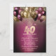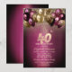Invitación Purpurina de los globos de Borgoña 40 cumpleaños