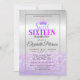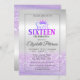 La purpurina tiara en la purpurina bokeh sombría invitación a la fiesta de 16 años.