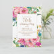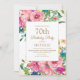 Elegante y colorido color rosa, azul y amarillo acuarela floral con purpurina de oro en una blanca invitación de cumpleaños 70 para las mujeres. Póngase en contacto con el diseñador para obtener ayuda sobre la personalización o para solicitar productos de coincidencia o coordinación. El texto de esta tarjeta es completamente personalizable y puede ser diseñado para un fiesta que celebra a cualquier persona de cualquier edad.