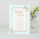 Invitación purpurina de oro azul Rubor con arco Chico Baby Sh
