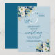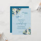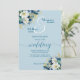 Una elegante invitación a la boda con polvorientas flores azules y purpurinas doradas y elegante caligrafía que usted puede personalizar con sus detalles.