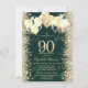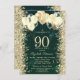 Invitación Purpurina de oro Confetti Globos Green 90 cumpleañ
