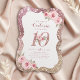 Faux rosa dorado brillante marco purpurina y florido rosa con 10 grandes en el centro, elegante y elegante, grandes invitaciones de primer cumpleaños para el chica.