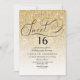 Invitación Purpurina de oro Elegant Script Dulce 16 Cumpleaño