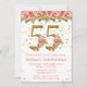 Purpurina de oro de Rosas florales rosados 55ª invitación para una mujer de 55 años con escritura moderna y purpurina de oro.