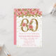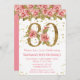 Invitación Purpurina de Oro Floral Rosa 80º cumpleaños