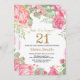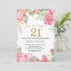 Invitación de cumpleaños número 21 para mujeres. Flor floral botánica acuarela.Brillantina dorada. Flores Florales De Peonies Rosados. Cumpleaños de adultos.
