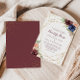Esta invitación de boda floral nuestra boda, purpurina de oro geométrico, es perfecta para un boda español moderno. El diseño está decorado con acuarela de color púrpura, marina, rubor, burdeos, flores de la marina, hojas verdes y doradas y adornan un marco geométrico elegante