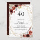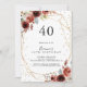 Esta invitación geométrica a la fiesta de cumpleaños número 40 de este purpurina de oro es perfecta para una simple fiesta de cumpleaños. El diseño se compone de hermosas flores pintadas a mano en tonos rosa, rubia, rojo, azul y borgoñoso, combinadas con follaje verde, adornando un marco geométrico de purpurina dorado.