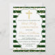Invitación Purpurina de oro Green Striped First Holy Communia
