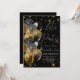 Invitación Purpurina de oro negro de cumpleaños de los globos