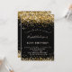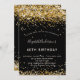 Invitación Purpurina de oro negro de cumpleaños glamoroso