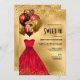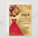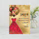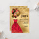 Invitación Purpurina de oro rojo Tiara Vestido dulce 16 cumpl