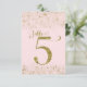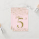 Invitación Purpurina de oro rosa Rubor Números de tabla 5