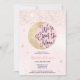 Adorable lindo rosa lindo Estamos sobre la chica de la luna, fiesta de la ducha bebé, con ilustraciones lindos con luna purpurina dorada, estrella editable rosa, signos zodiacos, nubes. Con un rosa pastel y azul marino editable.