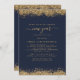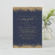 Invitación Purpurina de oro Script Navy azul Año Nuevo Fiesta