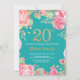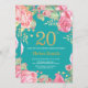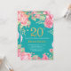 Invitación floral de cumpleaños número 20 para mujeres. Flor Floral Botánica de acuarela. Brillantina dorada. Fondo verde azulado Aqua Turquesa. Flores Florales De Peonies Rosados. Cumpleaños de adultos. Para una mayor personalización, haga clic en el botón "Personalizar" y utilice nuestra herramienta de diseño para modificar esta plantilla.