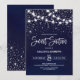 Esta majestuosa y glamorosa y dulce invitación para 16 cumpleaños es perfecta para la muchacha. Cuenta con hilos brillantes de luz colgante encima de un falso purpurina de color plateado impreso sobre un fondo abstracto azul marino inspirado en estrellas en el cielo nocturno. Es bonito, moda, moderna, moderna y fresca; el diseño perfecto para el día especial de tu hija. ***NOTA DE DISEÑO IMPORTANTE: Para cualquier solicitud de diseño personalizado, como solicitudes de productos coincidentes, cambios de color, cambios de posición o cualquier otra solicitud de cambio, envíe un mensaje al diseñador. Incluso puede enviarle una solicitud de un diseño completamente personalizado y nuevo.