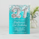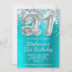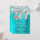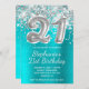 Invitación Purpurina de plata Balón Turquesa 21º cumpleaños