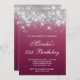 Girly moderno, glamoroso estilo manuscrito audaz script de 21 años de invitación para su flauta y brillante purpurina de plata con chispas extra en un oscuro fondo burdeos rosa oscuro. Esto será perfecto para el cumpleaños chica.