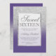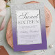 Moderna moda de bonito y elegante ducha de purpurina de color falso plateado oscuro con bloque de color violeta morado Invitación a la fiesta de 16 años dulce con y elegante marco plateado Perfecto para una princesa Dulce dieciséis.