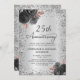 Invitación Purpurina de Plata Floral 25º aniversario Boda