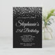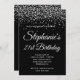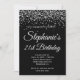 Invitación Purpurina de Plata Leopard Border Black 21 cumplea
