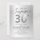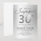 Moderno Shhh, es una invitación sorpresa para la fiesta de cumpleaños número 30, incluye un guión elegante y un falso purpurina plateado número 30 y detalles de su fiesta sobre el fondo plateado, simple y elegante, una gran sorpresa para adultos invitaciones para cumpleaños para hombres y mujeres. el color de fondo negro puede cambiarse a cualquier color de su elección.
