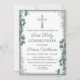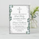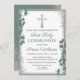 Invitación Purpurina de Plata Verde Primera Santa Comunión
