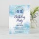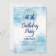 Sencilla salpicadura de color azul abstracto con invitación de fiesta de cumpleaños purpurina. Bonito para fiestas de invierno. Sencillo, elegante, adecuado para mujeres y hombres.