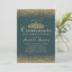 Invitación Purpurina del Tiara de Oro Glam Emerald Green Quin