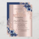 Invitación Purpurina Drips Rosa Flores azules de oro Dulce 16