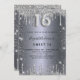Una invitación moderna, elegante y glamurosa para una fiesta de 16 y 16 años de chica. Un fondo falso plateado, decorado con polvo purpurina. Personalice y agregue su nombre y detalles del fiesta. El número 16 se escribe con un tipo de letra, guión.