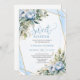 Invitación Purpurina Dusty Blue White Gold Flores Dulces 16