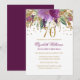 Invitación Purpurina floral Sparkling Amethyst 70th Birthday