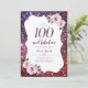 Invitación Purpurina morado de Borgoña y floral 100 cumpleaño