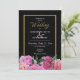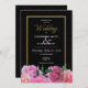 Invitación Purpurina negro y negro y Boda de rosas rosadas