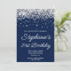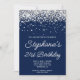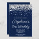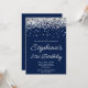 Invitación Purpurina Plata Medianoche Azul 21 cumpleaños