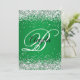 Una elegante invitación monogramada de 50 años 5x7 para ella. Purpurina plateado fino y brillante con destellos contra una imagen gráfica oscura verde de menta brillante. Se puede personalizar el lujoso monograma de caligrafía en blanco y negro del centro. Todos los brillantes elementos plateados de este moderno diseño de gentilitas son gráficos digitales. Un diseño para tu celebración de invierno, feriado o cumpleaños de diciembre.