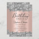 Invitación Purpurina Plata y Rosa Oro Metalizado 80 cumpleaño