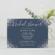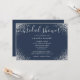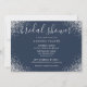 Elegante invitación a la ducha de novia azul marino y plateado con un moderno tipo de letra de escritura y confeti plateado. Elementos coincidentes disponibles.