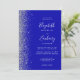 El lado izquierdo de esta elegante y moderna invitación a la boda tiene un diseño purpurina de imitación plateado. El texto del personalizable combina la escritura a mano en blanco, la copperplate y las letras cursivas en un fondo azul real. El reverso proporciona espacio para los detalles del boda sobre un fondo azul real sólido, junto con un código QR que los huéspedes pueden explorar para visitar su sitio web y RSVP, lo que ahorra el coste de imprimir y enviar tarjetas RSVP separadas.