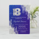 Invitación Purpurina plateado moderno gotea azul 18 cumpleaño