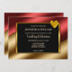 Moderna purpurina de lujo dorado y rojo, invitación a la boda de corazón dorado.