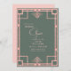 Invitación a la ducha de novia. Información sobre la espalda también. Marco Art Déco Purpurina rosa. Fondo de sabio rico.