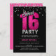 Invitación Purpurina rosa caliente Sparkles DULCE DIECISÉIS 1