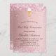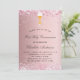 Fondo de degradado rosa de color rosa. Decorada con purpurina falso rosa, confetti, cáliz y un anfitrión Personalice y añada un nombre y detalles. El nombre se escribe con un guión de estilo con letras a mano