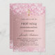 Fondo de degradado rosa de color rosa. Decorado con purpurina falso rosa, confetti y cruz. Personalice y agregue un nombre y detalles. El nombre se escribe con un guión de estilo con letras a mano