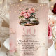 Invitación Purpurina Rosa Oro 90 cumpleaños de la Copa de Té